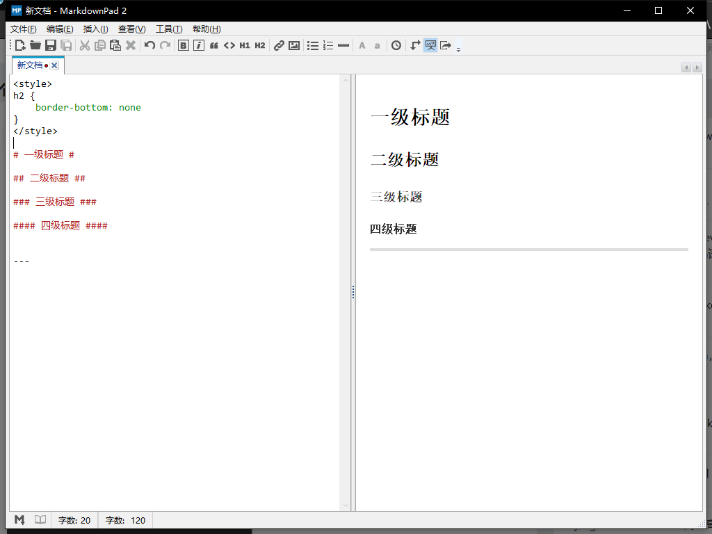 可以看到二级标题下的分割线已经消失,同时通过正常方式插入的分割线不受影响。