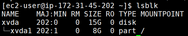 SSH里使用lsblk命令,卷已从8G扩展到16G了,但分区依然为8G。